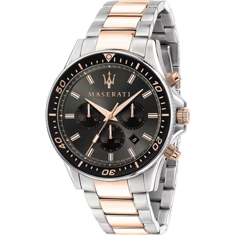 - Maserati logo on dial and crown, a mark of Italian prestige